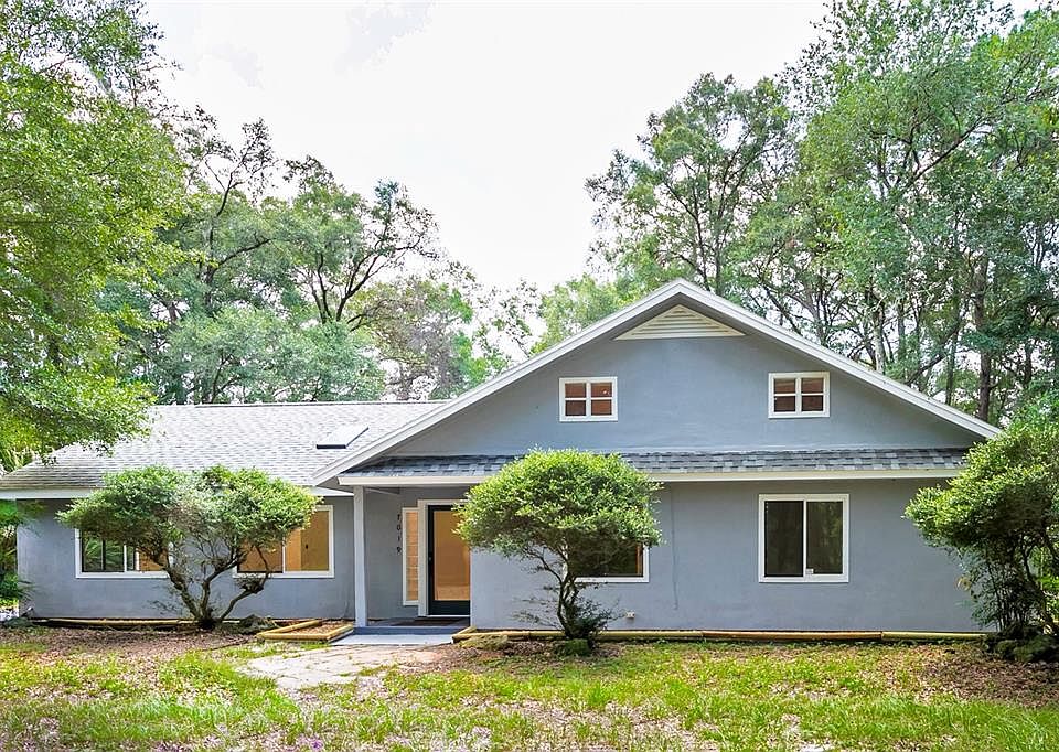 Welcome to this stunningly private retreat nestled on 5 acres of partially cleared land, offering both tranquility and convenience in one remarkable package. Located within an effortless approximately 5 mile commute to the University of Florida, Shands Hospital, and the VA Medical Center, this residence strikes the perfect balance between seclusion and accessibility. Step inside and be greeted by the open and airy living space enhanced by the vaulted ceilings that create an inviting atmosphere. This home boasts a spacious floor plan that captures a unique charm. With ample room to spread out, you'll find comfort and versatility in every corner. The kitchen has been tastefully updated with white cabinetry, new quartz counters, stainless sink with upgraded faucet and all new stainless appliances including convection wall oven, gas cooktop, dishwasher with stainless tub and microwave oven. The downstairs area has three generously sized bedrooms and 1.5 bathrooms which provide comfort and convenience for both residents and guests. As you ascend the open staircase, the upper level unveils a delightful surprise, two loft style bedrooms exude an artistic vibe, offering a cozy retreat while maintaining a sense of openness. There is also a full bath on the second level. The bathrooms have been updated with new toilets and faucets. The main level bath features new porcelain bath tile, large mirror and new vanity. The open space on the first level near the staircase is perfect for an office or den. Other updates to the home include fresh new painting of both the interior and exterior, new light fixtures, all new door hardware and a new roof in Oct of 2020. Outside, the sprawling 5-acre property offers a mix of natural beauty and potential for customization. The partially cleared land provides a canvas for your imagination, whether you dream of creating lush gardens, outdoor recreational areas, or a tranquil escape surrounded by nature. The newly painted four board fence welcomes you to this secluded property. Two sheds are set with the ability to hook into power and offer flexibility as additional storage or a future workshop, and the huge 20x30ft covered carport is perfect for a large boat or RV. The agricultural zoning allows for horses and otherwise has a private boarding stable nearby. With its serene location, remodeled features, and unique layout, this property is truly a gem waiting to be discovered. Embrace the privacy of your own oasis while remaining within easy reach of the vibrant city life and essential amenities. Don't miss the opportunity to call this charming residence your own!