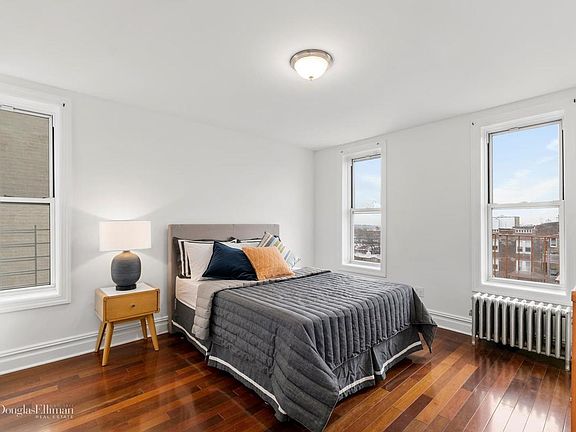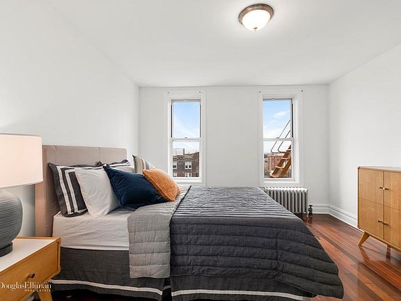 Beautifully renovated Sunset Park condo with views all the way to the Verrazano Bridge. Welcome to One Sunset Park, apartment 5A, an amazing condo located in the heart of Sunset Park! This two-bedroom, one-bath home features a beautiful kitchen with Kitchen Aid range, French-door refrigerator, dishwasher and microwave. Each of the bedrooms is of great size and offers ample closet space. The open concept living/dining room is highlighted by warm hardwood floors and a view overlooking southern Brooklyn. The building offers amenities such as : live-in superintendent, modern elevator, fitness room, backyard garden, landscaped entrance courtyard, interior bicycle storage, and personal storage units. There is an additional laundry room in the basement and the building is pet friendly. Directly across the street is Sunset Park with amazing views of lower Manhattan and has a recreation center with Olympic sized swimming pool. Multiple transportation options with express and local subway access just a few blocks away. Industry City is also nearby with multiple options for eating, shopping, and art/event space. Come home!