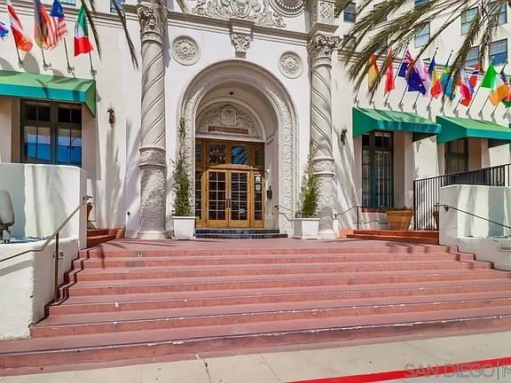 Welcome home to this elegant, iconic, and historically significant El Cortez residence! A spacious, light-filled northeast-facing end unit with sweeping Balboa Park, City, and mountain views, with a private 2-bed/2-bath split floor plan. A full-sized kitchen with granite countertops provides the perfect space to whip up culinary delights and entertain guests. This home features stunning new hardwood floors, new paint, high ceilings, A/C, Nest thermostat, keyless entry, and in-unit laundry. Walking distance to the wildly popular Little Italy Farmer’s Market, Seaport Village, Balboa & Petco Parks, Gaslamp, and fantastic dining, cafes, bars, boutiques, and entertainment. A short distance to the airport, train, trolley, and beaches. Community amenities include on-site management, pool, fitness center, package lockers, and a sunny, expansive 2nd floor patio with BBQ and spectacular views. The El Cortez recently replaced its access control and camera system for even more convenience and comfort in this lovely urban oasis. The historical building's Mills Act program offers significant savings on property taxes. Don't miss the opportunity to call this coveted San Diego residence home - schedule your tour today!