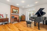 Bright sunroomWelcoming front porchPrimary suiteHigh ceilingsHardwood floorsDecorative fireplacesComfortable family room