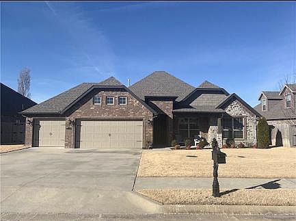 Newer house in an excellent location! The structure is a C3 custom home, featuring a flow that highlights the kitchen and opens to the main living space, raised cathedral and beautifully beamed ceilings in living and master bedroom, plantation shutters on southwestern portion of the home. Traditional formal dining, or, great for study/sitting room. Butlers pantry complete with wine rack, covered patio, wood floors, LED can lights, custom tile showers, central vacuum, irrigation system and much so, so more. It is minutes away from the up-and-coming promenade. The promenade is home to an outdoor shopping center, new office spaces, and a large concert venue, the Walmart Amp. The home is 10 minutes to the airport, XNA, 19 minutes to the Walmart Headquarters, and 13 minutes from the JB Hunt headquarters. As well, it is mapped to some of the best schools in Arkansas. Move in is available on April 1st. Renter is responsible for utilities (Water, Gas, Trash) and yard maintenance. Property owner will cover 6 fertilizer applications a year to handle weeds. Parking should be a non-issue with a 3 car garage and large driveway. No smoking. Due at signing: 1st month and last month rent.