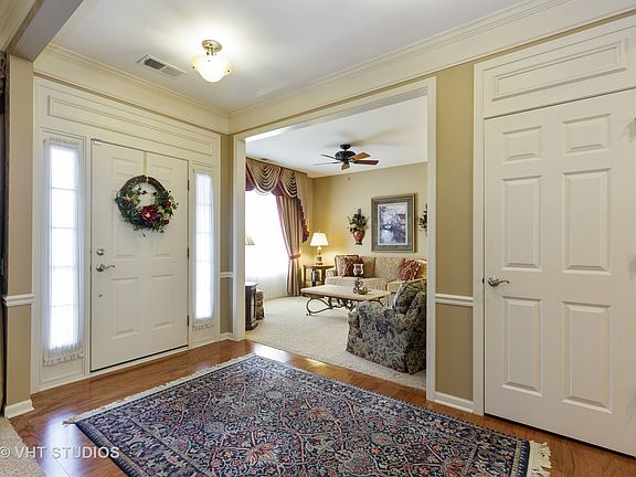 Stunning 3 Bedroom Crystal model with 3092 sq. ft. Plus a 3 Car Garage, on a larger lot with a private cul-de-sac location. Numerous upgrades and improvements:custom window treatments throughout; Gourmet Kitchen with larger island, SS appliances (newer microwave & dw, & disposal),42" cherry cabs.w/foot & crown moldings, under cab.lighting, custom Italian ceramic subway tile backsplash, newer Murray Feiss lighting fixtures, drawers w/designer compartments, double oven, quartz counters. Hardwood floors in kitchen, breakfast rm., sunroom, & foyer. DR has new light fixture, crown molding, chair rail, subtle wall paper on 2 walls & butler pantry, This home has 2 Master Suites...#1 has Tray ceiling, sitting room, Master Bath has whirlpool, custom shower, cabinets, electric shade, towel bars, lights. Master bedroom #2 ensuite has private bath, walk-in closet, and bay window and is on other side of house. This model has powder room also. Carpet and pad upgraded thru-out. Entire interior completely repainted a 2nd time in '16. HWH replaced in '14 *3 Car Garage has epoxy floors and 6 custom cabinets. Paver brick patio w/walls (and gas line for your bbq), driveway ribbons & stoop.Many add'l trees and bushes added to property and there is also an underground sprinkler system. Driveway was replaced in '14. Please go to both video's, one will take you on a 3D walk thru the house.( Also see floor plan under Add'l Info with a List of Household improvements) Edgewater by Del Webb is a "Lifestyle" with Creekside Lodge which has an indoor pool, hot tub, outdoor pool, billiards room, fitness center, tennis and bocce courts, and is a gated community 24/7. No more grass or snow maintenance also! Both included fully in your HOA fee monthly.