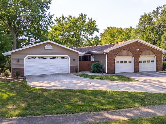 Corner lot with 4 garage spaces! 2 car detached in-floor heated garage (24x32) was added in 2018 with extra back garage door to private fenced yard. Oversize 2 car attached! Screened in porch for you to enjoy fall evenings along with many updates to the interior of home. Newer windows and sliding door, updated baths and a walk-in shower, and all appliances 2019 stay with the property. Water heater replaced in 2019, HVAC in 2023. Surplus of Shrock cabinets in the eat-in kitchen. Newer LVP flooring recently installed in living room, and all ceiling fans replaced. Open basement has been finished with great storage closets! Laundry was moved upstairs to 3rd bedroom but hook-ups on both levels. Extra sink for garage too and a separate mud room before entering the back of the house for personal or for your pets too!!! Make this great location your home!! So close to restaurants, shopping, State Farm and so much more!!!