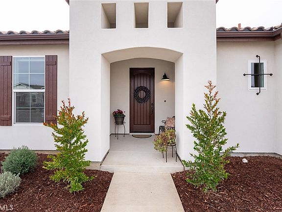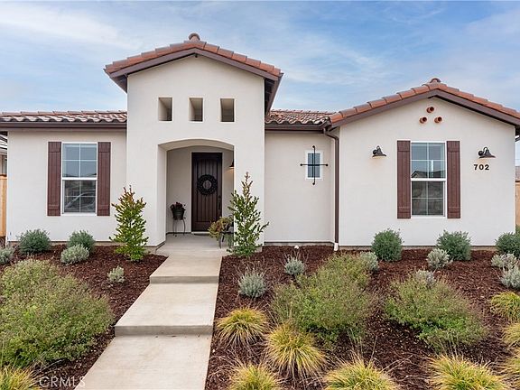 Welcome to this nearly brand-new home, perfectly positioned on a premier corner lot in the renowned 55+ gated community of The Vintage. Designed for ease and comfort, this single-level “Estrella” model offers +/-1,840 square feet of bright, open living space, complete with 3 bedrooms, 2 bathrooms, and a convenient side-loaded 2-car garage. Inside, enjoy 9-foot ceilings and impressive 8-foot glass doors that flood the interior with natural light, while a welcoming courtyard sets the stage for relaxed outdoor gatherings. The kitchen delights with upgraded stainless steel appliances, a custom backsplash, quartz countertops, and a spacious pantry. The primary suite offers direct patio access, a large walk-in closet, and a spa-inspired bath featuring a curbless walk-in shower, dual vanities, and a separate water closet. Outdoors, low-maintenance pavers, turf, and a sturdy pergola invite you to unwind in your own private oasis. Green thumbs will appreciate the pre-plumbed raised beds, ready for a garden of fresh produce, and there’s plenty of room for a future hot tub. Rounding out this impressive home are an owned 4.08kW solar system, a whole-home air purification system, and interior fire sprinklers—ensuring both efficiency and peace of mind. Don’t miss the chance to experience this modern, energy-conscious residence, crafted for carefree 55+ living in beautiful Paso Robles.