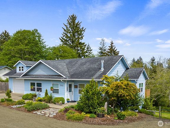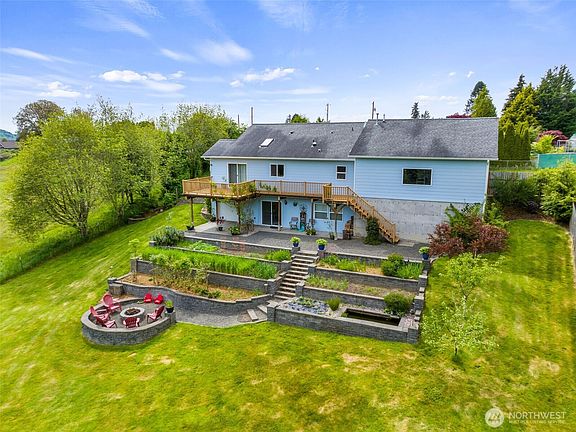 Charming home on .76-acre lot offering serene views and thoughtful landscape. Main floor offers vaulted, open great room design with sweet gas fireplace, generous dining area & big kitchen with hickory cabinets & solid surface counters. Large laundry room too, extensive bamboo hardwood flooring, large deck with territorial views off dining area. Main floor master with walk-in and private bath newer laminate flooring. Lower-level features large family room, 2 additional bedrooms & office. Slider leads to patio/rear yard. Yard is fully fenced with firepit, garden beds & chicken coop. Additional garage storage bay ideal for lawn equipment & lawn furniture.