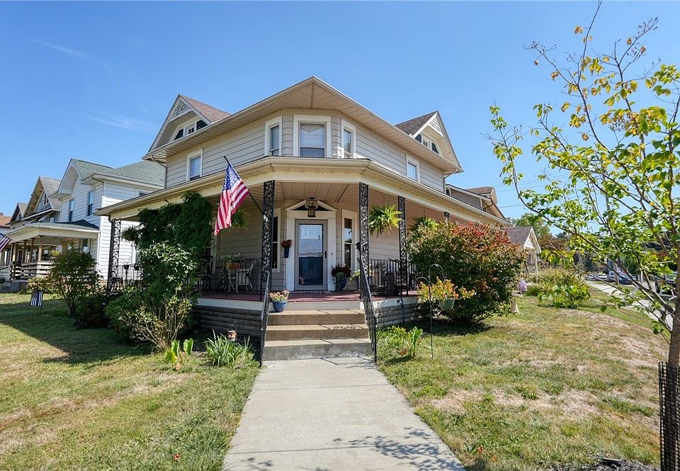 Step back in time with this charming 2100+ sf historic gem, formerly part of the renowned Clark St. Farm in Cambridge, OH! Built around the year 1900, this home offers a blend of timeless elegance and modern convenience. The spacious layout features a captivating wrap around porch showcasing the corner lot, 4 bedrooms and 2 full bathrooms, including a convenient first-floor bath with a stackable washer/dryer. The first floor also features a sprawling stainless steel appliance equipped kitchen, refinished hardwoods and beautifully restored original woodwork run throughout, highlighting the home’s rich history. From the intricate craftsmanship to the expansive spaces, this property provides a unique opportunity to own a piece of Cambridge history, perfect for those who appreciate character and charm. Don’t miss this rare find!