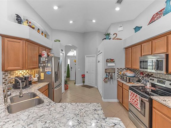 One or more photo(s) has been virtually staged. Welcome Home to 702 Coral Trace Blvd! This beautifully updated 3-bedroom, 2-bath, 1,898 sq. ft. home in the desirable gated community of Coral Trace is move-in ready and packed with upgrades. Conveniently located near I-95, the Indian River, and the pristine sandy beaches of New Smyrna Beach, this property offers both comfort and convenience. Step inside to find a freshly painted interior with tile flooring in all wet areas for easy care. Every window and sliding doors enhanced with Bermuda Shutters for that clean upscale look. The kitchen shines with stunning quartz countertops a lovely classy backsplash and newer stainless steel appliances, making it the perfect space to cook and gather. The split-bedroom floor plan features a spacious master suite with dual sinks, a relaxing whirlpool jacuzzi tub, and a separate shower. Indoor laundry adds ease to your daily routine, while the generous expanded lanai overlooks a fully fenced backyard—ideal for entertaining, relaxing, or letting pets play freely. Peace of mind comes with a new roof being installed, plus an HVAC system replaced in 2019, ensuring years of worry-free living. As a resident of Coral Trace, you’ll also enjoy access to a clubhouse and sparkling swimming pool, perfect for soaking up the Florida lifestyle. With its prime location, upgrades, and resort-style amenities, this home truly has it all—schedule your showing today and discover everything 702 Coral Trace Blvd. has to offer! Please note the home may be under video and audio surveillance.