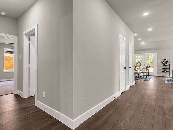 Discover comfort, style, and space in this thoughtfully designed 2025 single-story home, where every detail has been crafted to feel both welcoming and refined. Inside, you’re greeted by freshly painted walls and elegant crown molding, setting the tone for a bright, polished interior. The heart of the home is the open-concept kitchen, where form meets function. You’ll love the quartz island countertops, floor-to-ceiling white cabinetry, and a striking tile backsplash with a coordinating accent wall—a design choice that elevates the entire space. Luxury meets everyday ease with wood-look vinyl plank flooring throughout the main living areas, while plush carpet in the bedrooms adds warmth and comfort. Just inside the garage entrance, a flexible bonus area offers endless potential—create a drop zone, a cozy pet nook, or use it for additional storage. The primary suite sits quietly at the back of the home, offering a true retreat. It boasts a deep soaking tub, a large tiled walk-in shower, and a spacious walk-in closet—a sanctuary for relaxation. Practicality meets style in the dedicated laundry room, which features built-in cabinets, a folding station, and room for full-size appliances. Each of the four bedrooms is well-sized with generous closets, while the second full bath includes a tub shower combo—perfect for guests or busy households. Outside, the oversized backyard is a dream—ideal for entertaining, gardening, or just enjoying some fresh air. And here’s the kicker: this home comes with an additional parcel included in the sale, offering twice the land for even more possibilities. Whether you envision a pool, a workshop, or just room to roam, this extra space is a rare bonus in today’s market.