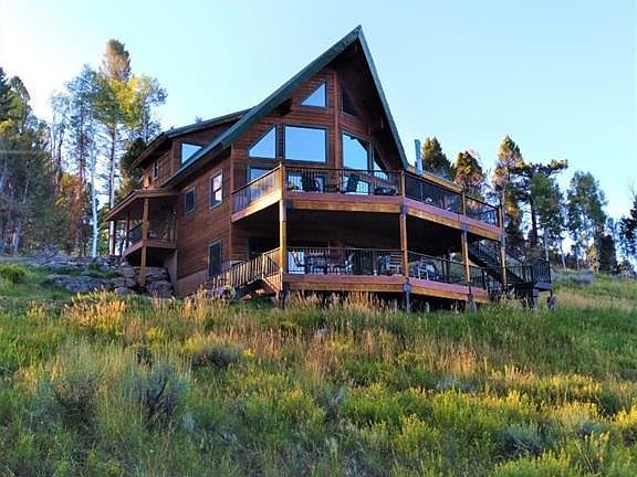 Beautiful 2800 sq ft Mountain Home situated among majestic trees and sweeping views. You won't be able to get enough of the views while enjoying indoor/outdoor living made easy with the 2 story spacious wrap around Trex deck which leads you down to a fantastic spacious entertaining firepit area with more views!!!! This home is spacious and inviting with vaulted T&G ceilings, gorgeous stacked stone gas fireplace in the living room, dining & kitchen. S/S appliances, granite countertops & backsplash. The lower level is set up as a guest suite/game room. The wet bar is complete with refrigerator, sink, dishwasher and plenty of storage. Beautiful views from the wrap around windows and sliding glass doors that lead out to the covered deck & firepit area. This home comes furnished & tastefully decorated so you can move right in. 500 gallon gas tank to keep you playing and adventuring on your ATV's & snowmobiles. Enjoy the privacy & nature in this special setting where you'll see deer, elk, turkey, grouse, fox, bear and a variety of birds. So much to do and enjoy and this could be the perfect house to call your mountain home!!