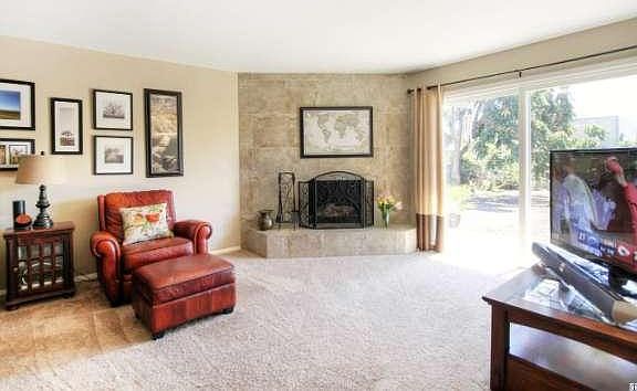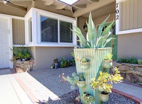 Built in 1962 this Mid-Century traditional has fun contemporary flair! Located on a private street, this lovely home enjoys privacy in a unique setting. There are gorgeous dark hardwood floors in the entry, dining area, kitchen and hallways. The living room has a large fireplace with a raised tile hearth and tile feature wall that is a beautiful focal point to the room. There are glass sliders to the back yard that flood the room with natural light. The kitchen has granite counters and stainless steel appliances and opens out to a huge dining area. There are two bedrooms with mirrored closet doors and newer carpet. They share an adjacent updated full bath with granite counters, tile flooring, under-mount sink and custom cabinetry. The master suite has a large closet, ensuite updated bath with granite counters and tile flooring, newer carpet and views of the backyard. The back yard is enclosed and has a new fire pit to keep you cozy on chilly nights. Other property features include an attached 2-car garage with laundry, central air, new sewer main line (2014) newer roof (2013) and many new windows.
