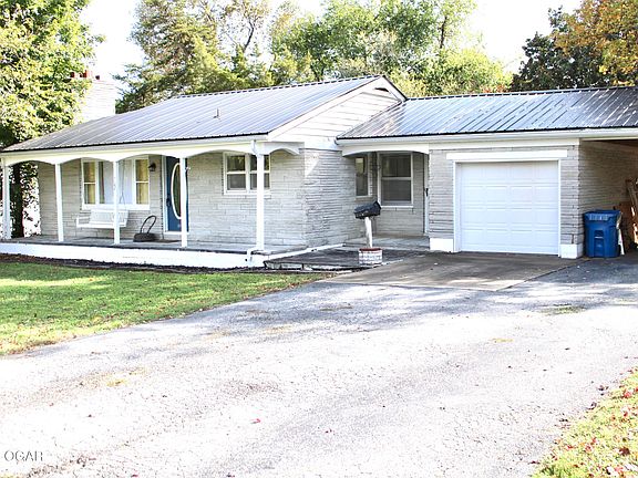 Carthage Marble Home. This beautifully remodeled home features many updates while maintaining its original charm. Hardwood floors showcasing Carthage Marble fireplace, Bonus room for possible 3rd bedroom, Butcher block counter tops, tiled walk-in shower, Basement, large Carthage Marble patio, second fireplace, newer metal roof, new HVAC to be installed, 2 attached garages, and the list just keeps going.