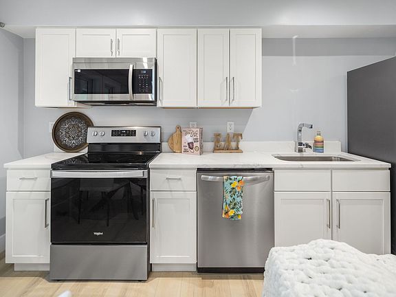 Each apartment comes fully furnished and features all new kitchens, upgraded bathrooms, new flooring and remodeled living and bedroom areas. Enjoy this home's classic charm blended with modern amenities like custom tile baths, LED vanity mirrors, smart lights and digital door access. The kitchens feature a full suite of new stainless steel appliances, wood cabinets, and quartz countertops. Common areas feature new furnishings including wall-mounted flat screen TVs and space for living and dining accordingly. Additional Furnishings include a couch, dining room table and chairs or kitchen counter seating, full size bed frame and mattress, desks and desk chair, and closet and dressers or large armoire in each bedroom.