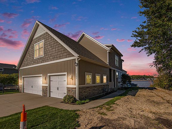 Welcome to your new waterfront residence. This beautiful home was built to the highest of energy standards, on the main body of Spring Lake in 2014. You will love the open floorplan with coastal charm. The living room boast a lovely fireplace wall and a window wall opening to the three season room. The kitchen boasts a large center island and a spacious walk in pantry. The sitting room features a tall cathedral ceiling as well as a second, wood burring fireplace for those chilly evenings. The spacious primary suite has great views and a private patio in back for relaxing. The primary ensuite has walk in tile shower for convenience. The main level is completed with a laundry and half bath. Upstairs is a wonderful loft, office area with large waterfront windows. The second bedroom is a nice size and the full bath is full of fun details. The fabulous bunk room is sure to delight your guests with it's built in beds and fun details. Outside you will find comfortable patio's along with well done fencing for safety and privacy. The seawall has recently been replaced and the dock is permanent and bubbled for year round protection. The location can not be beat with easy access to the the Spring Lake bike trail and all the lakeshore has to offer. Come take a look and you will want to make this your next home.