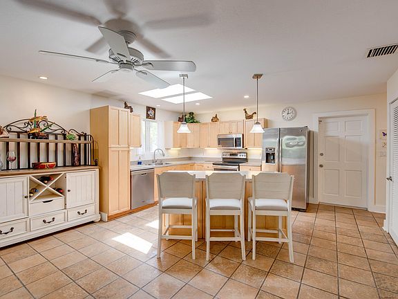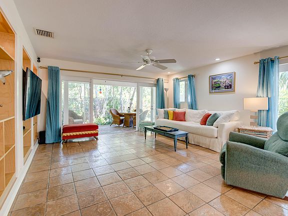 BRAND NEW ROOF with new Kitchen Skylights! This beautiful single-story CBS home is on a desirable corner lot within the highly sought-after Meadows neighborhood. Close to the Historic Seaport and the iconic Duval Street, this charming 2-bedroom, 2-bathroom home, built in 1972, offers a light and bright open floor plan, ideal for entertaining. The kitchen features stainless steel appliances and skylights that infuse the space with natural light. The living area is enhanced by custom built-in display shelves, adding both character and practical storage solutions. Retreat to the comfortable bedrooms, each boasting elegant French doors that open to their own private patio. Seamlessly extend your living space outdoors through another set of elegant French doors that lead to a spacious screened porch with tongue & groove ceiling. Escape to your own peaceful garden retreat enhanced with enchanting garden lights that create a magical ambiance, and a convenient sprinkler system to keep it looking its best. Add your own dipping pool or swim-spa just beyond the screened porch to make this your Keys dream. This property offers 1,458 square feet of living space with an abundance of storage space and off-street parking with a coveted carport.