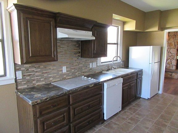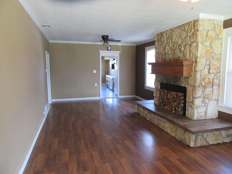 The house has been completely remodeled in the last five years to include the bathroom, kitchen, and flooring. Large stone fireplace with decorative insert and heavy wooded mantel provide the homey feel you have been looking for. (Fireplace is decorative only and not for use). Cozy front porch along the front of the house boasts a porch swing for relaxing outside. Built in shelves in the closets and a large pantry cabinet in the kitchen provide organized storage space. There is a separate wash room with washer/dryer hookups. (Washer and dryer are not included. There is a storage building outside that is considered primative storage; dirt floor, no electrical. Small porch in the back with a good sized back yard perfect for entertaining.