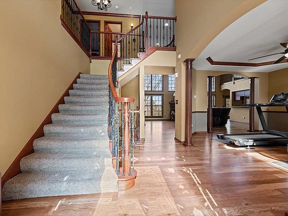 Nestled in a premium cul-de-sac setting, this exquisite 1.5-story home offers a beautiful picturesque lot with stunning curb appeal. Step inside to a 2-story foyer with gleaming hardwood floors that flow throughout the main level. The spectacular 2-story great room features a breathtaking window wall, flooding the space with natural light, and a fireplace. The stunning kitchen boasts 42” custom cabinetry, granite countertops, a spacious island, a walk-in pantry, and an adjoining breakfast room. The main-level primary suite is a retreat of its own, complete with two walk-in closets and an expanded luxury bath. A formal dining room and a convenient laundry room complete the main level. A loft, 3 bedrooms, a Jack & Jill bath, and a private full bath complete the Upper Level. The walk out LL is ready to be finished to your specification for additional living space with rough-in plumbing and egress window. Additional features include a large deck, patio, 3 car garage, and more!