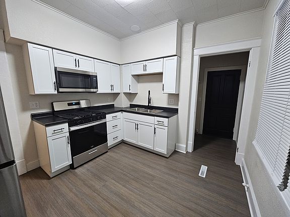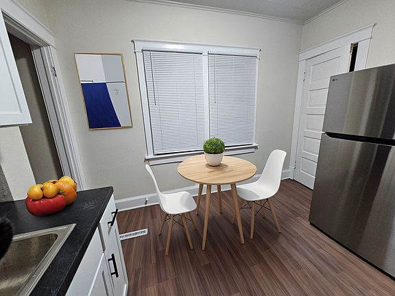 (gas/electric/water/sewer) are included! Enjoy your brand new kitchen cabinets and updated bathroom. Freshly painted and new flooring throughout. Close to schools, bus line and downtown. One off-street parking space. Note photos with furniture have been virtually staged. Rent includes gas, electric, water and sewer. Lease is month-to-month. In the case of pets there is a $200 refundable pet deposit. Landlord allows 1 small dog 25 pounds (non-vicious breeds) or up to 2 cats with additional rent of $40/per animal per month. Laundry hook-ups (you can bring your own) in basement and possibly shared use in a nearby building. Option of reduced rent if Tenant is willing to do lawn mowing and snow removal for the building, please inquire. Zillow application must meet our criteria before showing.