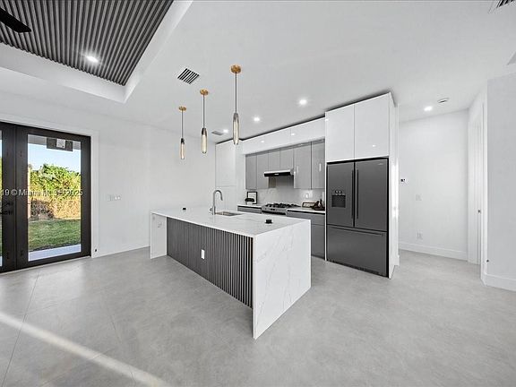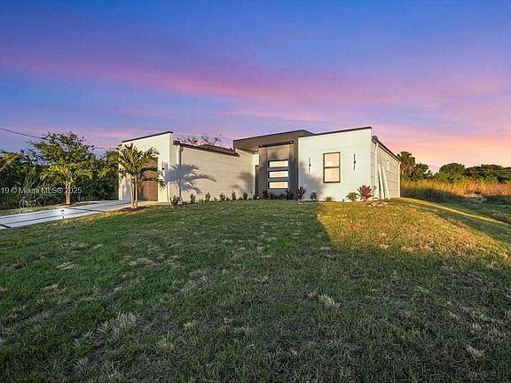 10 minutes from I-75 & 5 minutes from Publix!This upgraded modern model features full irrigation, gutters, paver driveway, and custom landscaping with exterior lighting.Inside, enjoy tray ceilings, upgraded LED lighting, wood-style PVC wall cladding, and level-4 smooth drywall.The kitchen offers a quartz waterfall island, stacked two-tone CUSTOM cabinets, and full quartz surfaces.Bathrooms include walk-in showers with glass doors and a double sink in the master.Additional features: impact windows, CUSTOM closets, oversized 1.5-car garage with epoxy flake flooring, and smooth stucco exterior.Same model available at 702 Irving Ave N, Lehigh Acres, FL 33971 — delivery August 2025.Note: Modern flat-roof look, but standard 4/12 slope — no concerns about leaks, high insurance, or standing water.