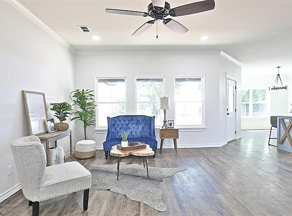 New construction in Jim Ned school district! Largest home on the street! Sits at the end of the cul-de-sac. Beautiful finishes throughout with fixtures, stainless appliances, lighting and grey undertones. Primary ensuite has free standing tub, separate tiled shower, built in shelving, double sinks, enclosed toilet room and large walk in closet. Open concept with split floor plan. Privacy fence, sod, and landscaping. You'll love small town living in this beautiful new home.