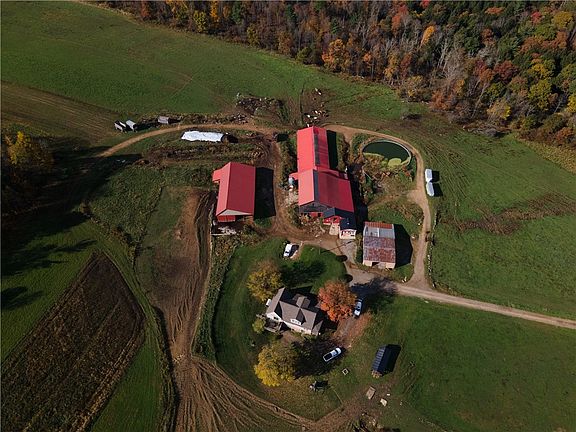 Discover the charm and productivity of this 110-acre turn-key dairy farm offering a rare combination of functionality and income potential. The property features a spacious 5-bed, 2-bath farmhouse, machine shed, and two operational cow barns. It also includes an all-in-one building which houses the milking parlor, milk house, and a farm store, allowing seamless milk production and on-site sales. Currently featuring fresh milk and ice cream. The land offers a balanced mix of about 47+/- acres of tillable ground, 35+/- acres of woods, and pasture making up the remainder—perfect for both crop rotation and grazing. Currently operating with about 63 head of cattle, this property is fully equipped and ready for immediate continuation of the dairy business. Whether you’re expanding an existing operation or seeking a ready-to-run agricultural investment, this farm combines productive acreage and well-maintained facilities. Entire business, equipment, and livestock are included in the sale.