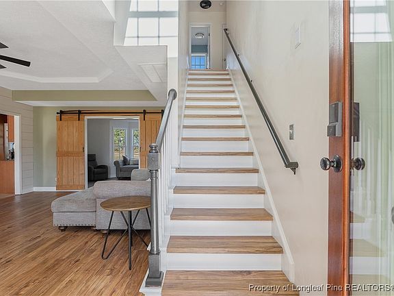 Amazing home on 11 acres—perfect for you and your horses! This private country oasis features extensive perimeter no-climb fencing, multiple covered shelters, run-in sheds with six horse feeding stalls, a gated entrance, and two 50-amp RV hookups with sewer connections—ideal for guests or travel enthusiasts. The well-maintained 3-bedroom, 3-bath home offers new LVP, custom pine barn doors, upgraded carpet, and two bonus rooms—one upstairs and one downstairs. The upstairs bonus room provides ample space for a guest suite, recreation area, or home office, while the spacious kitchen is ideal for entertaining. The split floor plan offers comfort and privacy, with the primary suite on the main floor featuring a custom live edge red oak headboard and generous space. Additional highlights include a large laundry room, custom Murphy bed in the first-floor bonus room, chicken coop, and beautiful shady pines and mature hardwoods throughout the property. Enjoy peaceful country living with plenty of space for animals, hobbies, and outdoor enjoyment—ready for its new owners!