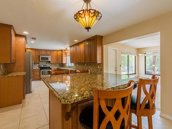 True pride in ownership is what you'll notice when you walk through this gorgeous 4 bedroom 2 bath home located in the heart of Suntree. Inside, the house boasts a large completely remodeled kitchen with all stainless steel appliances, granite counter tops, wood cabinets, and a tile backsplash. The master suite is upgraded with wood-look tile throughout, a 2 person jacuzzi tub, wall-mounted bathroom tv, walk-in tiled shower, and a granite vanity with double sinks. The exterior features a screened in private heated inground pool and spa with a salt chlorination system, a fully equipped Koi pond, newer roof and water heater all located on a corner lot with lush landscaping allowing total privacy.
