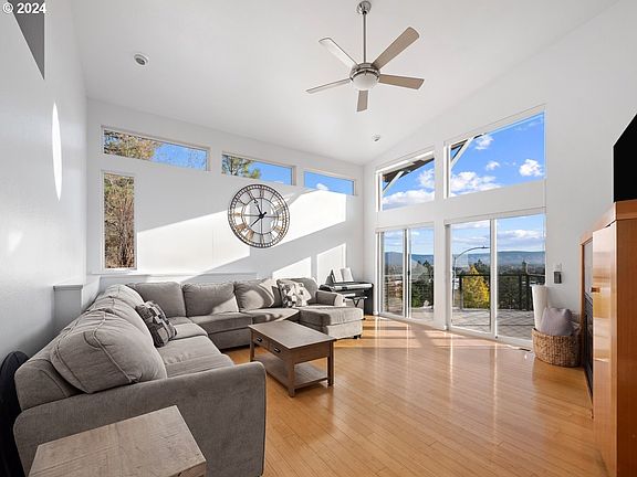 Custom Home!! This home was built with the amazing view in mind for every room. The living room with its gas fireplace, vaulted ceiling and access to the deck. The open kitchen and dining room have large windows, work island and additional storage. You can access the main deck with access to the back yard with new pavers leading the way. Plenty of room for your outdoor furniture. The upstairs has 2 bedrooms, one with sliding glass door to private deck. The master suite is at the top with ensuite, large walk in closet and additional bonus room.This home is within walking distance to the hospital and close to EOU and downtown.