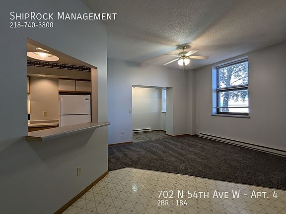 Available now! Located in the West End, this 2-bedroom, 1-bathroom unit offers a large living space, spacious kitchen with a pass-through window, plenty of natural light, and 2 nicely sized bedrooms. The building, the Calumet Exchange, once operated by the Northwest Bell Company, offers an off-street parking lot and coin-operated laundry. Nearby is plenty of restaurants, grocery stores, convenience stores, and quick access to Highway 35. Tenants are responsible for the monthly rent charges of $1250 as well as the electric utility. Additionally, a garbage fee of $10 per occupant, along with a monthly technology fee of $6.95 per account, are applied directly to your rent charges each month. We provide a liability insurance option at $18 through our in-house policy, though tenants also have the flexibility and freedom to secure their own coverage if preferred. We make it easy! From scheduling a showing, paying your rent to submitting a maintenance request and signing your lease, it's all online. A showing is required before the processing of an application can begin, please wait to submit applications until after viewing the property. Follow us @shiprockmanagement St. ShipRock Management is an Equal Housing Opportunity company. For more information go to FHEO.