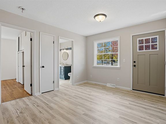 Move-In Ready & Totally Rebuilt! 2–3 Bedrooms | 2 Baths | 24' x 24' Detached Garage Looking for that brand-new home feel in an established neighborhood? This stunning remodel has been rebuilt from the roof down to the new foundation — everything is fresh and ready for you to move right in! Relocated to its current site in April 2025, this home features all-new roof, siding, windows, doors, foundation, kitchen, baths, paint, and flooring. Step inside to an open-concept living, dining, and kitchen area — perfect for entertaining or everyday comfort. The main level includes the primary bedroom, a full bath, and a convenient laundry room. The lower level offers a second bedroom, a spacious family room (or optional third bedroom), another full bath, and plenty of storage. You’ll love the oversized 24’ x 24’ detached garage with new entry and overhead doors — great for vehicles, hobbies, or extra storage space. Relax on the new covered deck with your morning coffee and enjoy a great location within walking distance to Stewart School and easy access to G36 and Highway 218. Everything’s been done — just move in and enjoy!