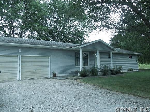 Pretty 3BR-1Bath ranch style home! Great kitchen w/ appliances - open to lg living room w/ new carpet, windows & door! lg bedrooms w/double closets, ceiling fan-Lg bath & laundry room! Newer vinyl siding, soffits & gutters- 2 car attached garage plus 2 storage buildings! Fenced back yard & patio looking over open fields! Convenient 1 level living on 1/2 acre at edge of town with the feeling of country!