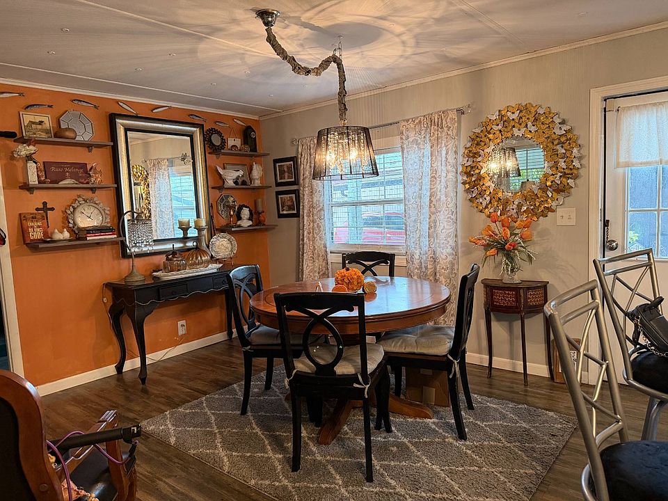 Bring your tools and imagination! This 2-bedroom, 1-bath Skylark home offers approximately 970 sq. ft. of living space, including a 240 sq. ft. enclosed sunroom - perfect for relaxing or entertaining once refreshed. Interior features include granite and wood kitchen countertops, double vanities with marble inserts, a custom tiled shower with designer accent strip and corner shelf, and stainless steel appliances with washer and dryer included. Outside, you'll find two driveways and two storage sheds - one with electricity - ideal for projects or extra storage. With a little TLC, this home can shine again! Great opportunity for investors, flippers, or anyone looking for an affordable home with potential.