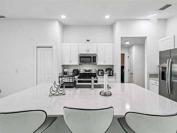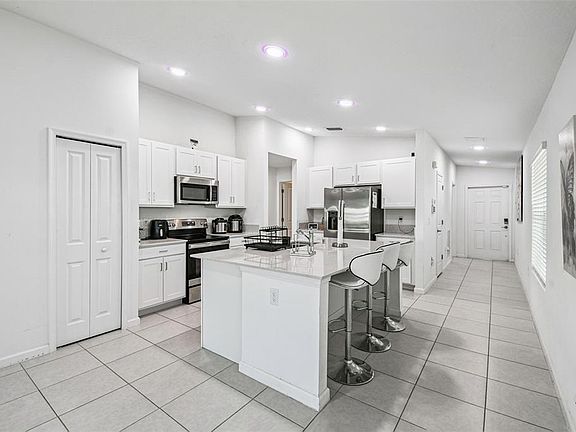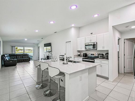 Welcome to this stunning Lennar-built home, completed in 2023 and ideally located in Palm Bay. This beautifully designed residence features three spacious bedrooms and two elegant bathrooms, with a split-bedroom floor plan that offers privacy and comfort. The heart of the home is a spacious kitchen with a large island, perfect for entertaining, featuring quartz countertops, premium wood cabinetry, and tile flooring throughout. Enjoy the peace of mind that comes with impact windows and the convenience of smart home features, including recessed lighting that enhances the modern ambiance. Step outside to a covered front porch, a paver driveway, and a backyard that overlooks a tranquil private lake, adding charm and serenity to everyday living. Located in a low-HOA community, your monthly dues include cable, internet, access to a dog park, and beautifully maintained common areas. With easy access to St. John's Heritage Parkway and proximity to shopping and dining, this home truly has it all—style, comfort, and location.