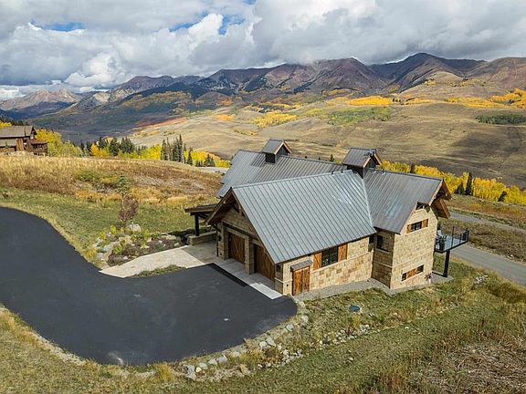 This home is a masterpiece created in the Prospect Subdivision and completed in 2020. Amazing views overlooking the East River Valley are highlighted from a wall of windows and the expansive decks. Beautiful rustic timbers and trusses are featured in the great room as well as throughout both levels. The kitchen boasts Wolf appliances, extensive refrigerator and freezer drawers slab countertops and a commercial hood system. The primary suite is located on the main level and features a fireplace, private deck, a walk through closet and wraparound windows. American Clay wall finishes are highlighted throughout the home as well as a fresh air recirculation system. There are three bedrooms each with an en-suite bath on the lower level as well as a sitting area, office and a family room that is currently being used as an art gallery and studio. There is a two car attached and heated garage with expansive storage space above. The homes's location in the ski-in ski-out subdivision of Prospect offers easy access to both ski trails in the winter and hiking and biking trails in the summer.