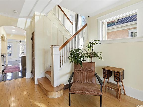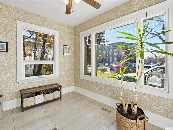 Don’t miss this beautiful character home in one of Saskatoon’s most desirable neighbourhoods! This property exudes pride of ownership with timeless charm and thoughtful updates throughout. Enter into the main floor- featuring a welcoming sunroom porch, lrg foyer, living room with wood burning fireplace, a formal dining with bay window. At the heart of the home is a chef’s dream kitchen- spacious and beautifully appointed with quartz countertops, stainless steel appliances, and a sit-up eating area that opens onto a sitting room, overlooking a large deck and private yard. A 2-piece bath completes the main. Upstairs, you’ll find 3 bedrooms: a primary suite with an ensuite — and a charming private deck off the master. Two additional lrg bedrooms and a newly renovated 3-piece bathroom complete 2nd flr. Large windows flood every room with natural light, highlighting the significant character this home offers. Extensive renovations and upgrades have been meticulously completed over the years, blending heritage with modern comfort. The unique dev basement offers a modern 1 bed suite with a sep entrance, 4-piece bathroom, 2 x laundry areas, kitchen, and a family room w/ gas fireplace — ideal for additional income potential. The oversized, heated attached garage includes a large attic storage area above. The front yard is low maintenance with a stamped concrete driveway providing parking three vehicles. Garden enthusiasts will appreciate the manicured backyard: a two-tiered deck, garden and flower boxes, artificial turf, and lush climbing vines. In total, there are three decks, including a covered front deck and the private balcony of the master. Upgrades include: furnace, hot water heater, shingles, garage, decks, kitchen, two bathrooms, basement development, many new windows, updated exterior, and driveway — the list goes on! This gem is ideally situated within walking distance to the river, downtown, the U of S, and all hospitals, the location is unbeatable.