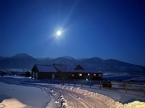 Welcome to the epitome of Montana living! This stunning 3BD/3BA+2 bonus rooms, 4,200 SF custom log home invites you to experience luxury in Stevensville, the heart of the Bitterroot Valley. This incredible home sits on 20.71 acres, offering unparalleled 360-degree views of the Bitterroot & Sapphire Mtns. Inside, you’ll be captivated by soaring ceilings accentuated by log beams, a spacious & open layout, & 2 grand river rock fireplaces on the main & lower level. The open-concept kitchen features stainless steel appliances & quartz countertops, ready for your culinary endeavors. The large primary suite has an ensuite full bath & dual walk-in closets, w/ double door exterior access to the front deck. Outside, the 2 spacious & covered decks, the large fenced backyard, & unobstructed views create a tranquil oasis perfect for entertaining & relaxing. Equestrians will adore the round pen, riding arena, & the 4-stall barn for horses or storage of your toys. 3rd bedroom is nonconforming. Step inside this 4,200 sq ft masterpiece and be captivated by the soaring ceilings, large diameter logs, and impeccable craftsmanship. The spacious layout features 3 bedrooms, 2.5 baths, and 2 expansive bonus rooms with closets. The pride of ownership shines through every detail, from the inviting full-length covered porch to the grand river rock fireplace that extends from the basement to the main floor.