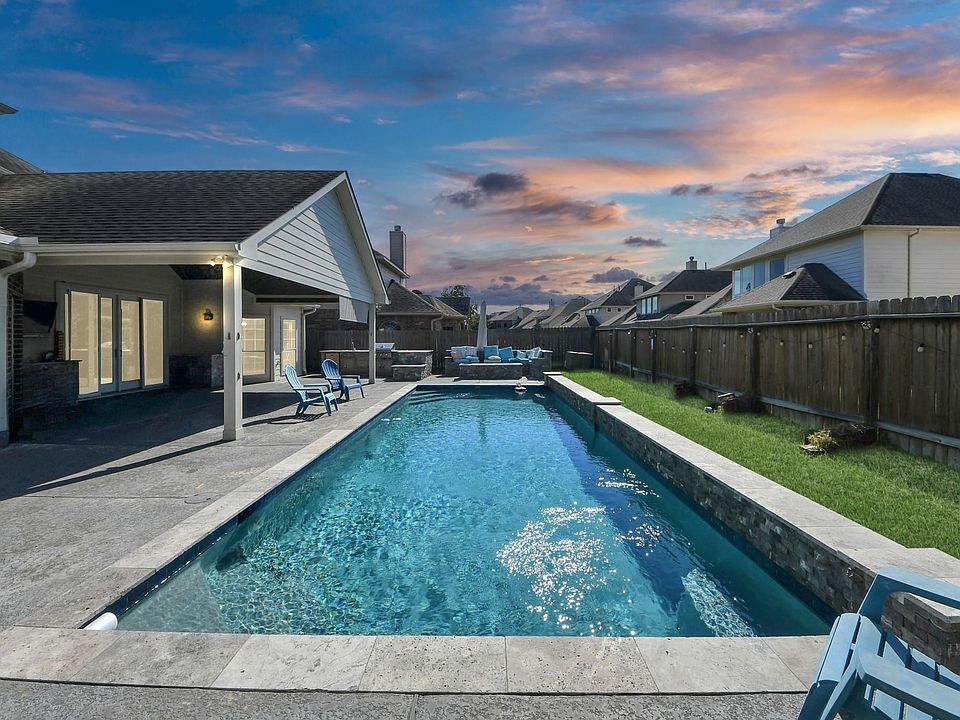 ABSOLUTELY STUNNING 5 BED/3.5 BATH HOME with spacious family room, formal living, elegant dining, private office/study, large game room, and separate media/theater room. The open kitchen-living concept showcases a chef’s kitchen with solid granite island & counters, breakfast bar, walk-in pantry, and high-end GE Café appliances including double ovens, gas cooktop, and dishwasher. Oversized 8-ft Anderson glass patio doors open to a private outdoor oasis with sparkling pool (heater & chiller), massive, covered patio, outdoor summer kitchen, built-in firepit with custom seating. Recent updates: tankless water heater (2022), roof (2019), two 20-SEER HVAC systems (2020). 44 solar panels are fully paid and power this home with average electric cost of only $90/month! This home truly has it all—luxury, efficiency, and entertainment.
