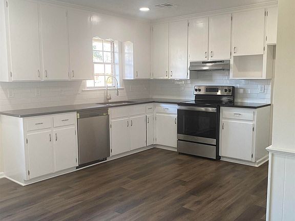 This stunning 3-bedroom, 2-bath home is an absolute must-see! With 1500 square feet of living space, this beauty sits on a desirable corner lot and offers all the features you've been searching for. Inside, you'll find gorgeous Laminate floors, a kitchen with granite countertops and ample cabinet space, and bathrooms designed to impress. All three bedrooms feature very spacious closets, providing plenty of storage. Step outside to a covered patio, perfect for family gathering and BBQs, or unwind in the charming sunroom-a peaceful spot for reading or quiet time. The backyard is fully fenced, offering privacy and security, and there's a carport plus additional parking on the side for your convenience. Don't miss out on this incredible opportunity- schedule your showing today!