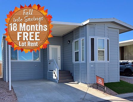 New Park Model home with great AZ Room addition, offers a cozy and efficient living space with 1 bedroom and 2.0 bathrooms. The interior features include a master bedroom, large living room, walk-in closet, Arizona room, kitchen, on suite bathroom, and foyer. The home is equipped with modern appliances such as an oven, fridge, microwave, garbage disposal, and stainless steel appliances. This home is on a quiet street in our beautiful Community and is perfect for a winter get away or year round living.