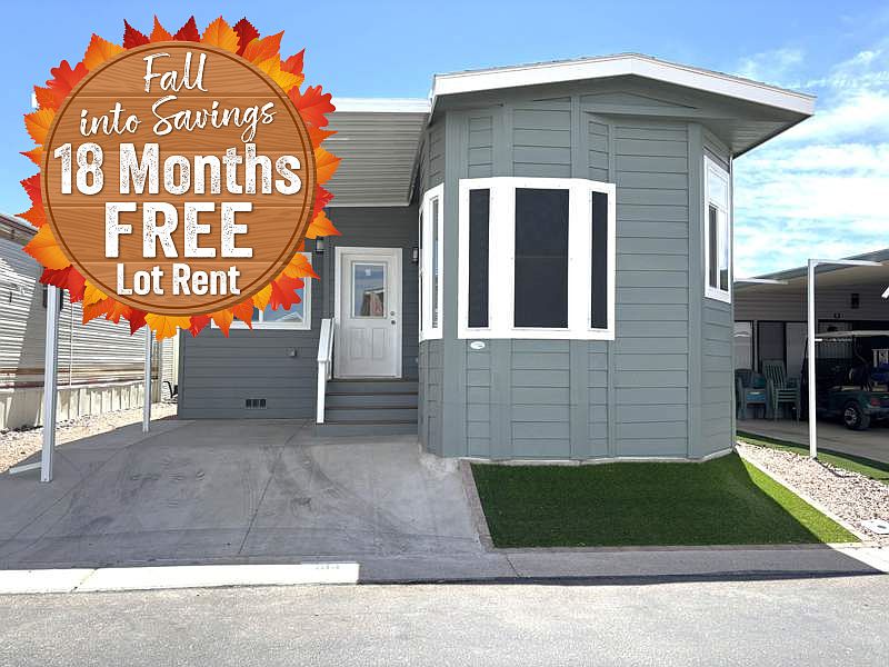 18 Months Free Rent!!! This Park Model home, built by Champion, offers 1 bedroom and 2 bathrooms. The cozy interior features a well-equipped kitchen with modern appliances, a comfortable living room, a breakfast nook for enjoying meals, and an Arizona room that provides additional space for relaxation or entertaining. The master bedroom offers a peaceful retreat and accommodates a king size bed, perfect for unwinding after a long day. Outside, the home boasts a convenient carport for parking.
