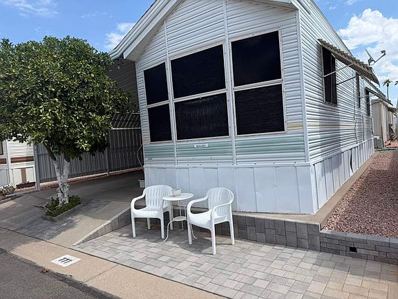This charming 399 square foot Park Model home in Apache Junction, AZ was built in 1993 by Cavco. It boasts 1 bedroom, 1 bathroom, a spacious living room, kitchen with modern appliances, dining room, laundry room, and bonus room. The interior features include a washer and dryer, hot water heater, microwave, fridge, and oven. The exterior of the home offers a convenient carport, shed converted into a bonus room, and a lovely patio perfect for enjoying the beautiful Arizona weather.Superstition Sunrise is a vibrant community located in Apache Junction, offering residents a variety of amenities and activities. The community features a clubhouse, pool, fitness center, library, and organized social events for residents to enjoy. With stunning views of the Superstition Mountains, residents can also take advantage of the hiking and outdoor recreational opportunities in the surrounding area. Superstition Sunrise is the perfect place for those looking to enjoy an active and social lifestyle in a beautiful desert setting.