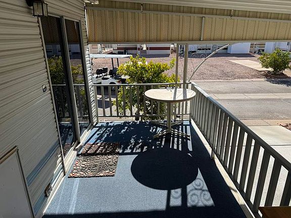 This charming 385 square feet Park Model home in Superstition Sunrise features a cozy 1.0 bed and 1.0 bath. Built in 1995 by Cavco, this home boasts a spacious living room, dining room, office, master bedroom, kitchen, breakfast nook, laundry room, and Arizona room. The exterior of the home includes a carport, shed, deck, patio, and trees on the property. Inside, you will find an oven, fridge, microwave, washer, dryer, and hot water heater for your convenience. This home is move in ready. Everything down to the linens and dishes come with the house. Just bring your toothbrush and make yourself comfortable in this all included home.Located in the vibrant community of Superstition Sunrise in Apache Junction, AZ, residents enjoy a plethora of amenities including a clubhouse, pool, fitness center, and social activities. With scenic views of the Superstition Mountains, this community offers a peaceful and relaxing atmosphere for residents to enjoy. Superstition Sunrise is conveniently located near shopping, dining, and outdoor recreation opportunities, making it the perfect place to call home.