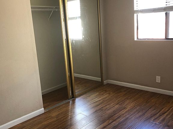 Remodeled, upgraded 2 bedroom 1 bath upper unit. Air conditioning, garage with second car off street parking. Hardwood floors throughout with tile in kitchen and bathroom, recessed lights in kitchen, granite countertops, stove, microwave, dishwasher, refrigerator, living room with custom crown molding and custom baseboards, ceiling fans/lights in dining area and bedrooms, mirrored closet doors in bedrooms, tiled bathtub enclosure, custom sink with extended granite countertop, Bright unit, Near schools, parks, downtown and major freeway, bike to beach. Great location! Owner pays water and trash