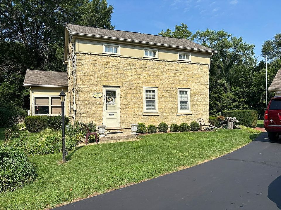 Rare opportunity to own an historic home in beautiful Rockton, IL. Large yard and green space. Quiet neighborhood. Great schools! The 18 inch thick limestone walls keep the home cool in the summer and cozy in the winter. This house has been updated with period appropriate wallpaper after much research. Large family room addition with hardwood floors and exposed limestone wall. Kitchen has new manufactured stone, continuous piece countertops, gas stove top, built in oven, dishwasher, disposer, plenty of pine cabinets and a wall pantry. The wide, cedar board floors were refinished last year. Dining room has a beautiful antique chandelier. The half bath off the kitchen has washer and dryer hook-ups available. Formal living room with beautiful windows and period wallpaper has an open staircase that leads to the 2 large bedrooms and full bath upstairs. The primary bedroom provides a dressing room/nursery with full wall closet and separate cedar closet. The second bedroom has a wall closet and handy access door in the wall to a large attic storage space. The bonus room on the first floor has a cedar closet and a built in desk with wood paneling from the old courthouse in Rockford. This is a perfect space for working from home.