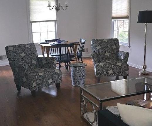 Laundry roomPrivate patioChestnut laminate flooring