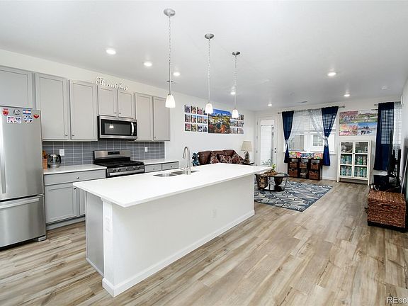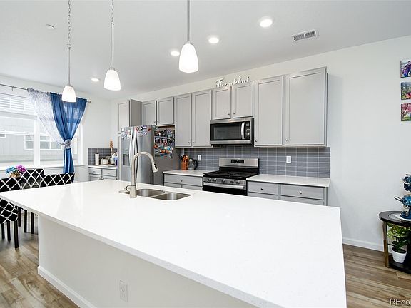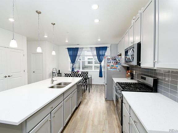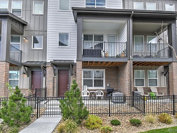 Built in 2023 - this stunning town home lives better than new! Open concept main level featuring luxury vinyl plank flooring, a bright and spacious family room that opens to a covered patio, a beautifully designed kitchen with a gas range, stainless-steel appliances, large island with pendant lighting, and a dedicated coffee bar or organizational area. The adjacent dining area with multiple windows boasts lots of natural light. A main floor powder room and closet round out the main level. Head upstairs for a great layout with two secondary bedrooms on one side, a large full bathroom, laundry area in the middle for convenience, and a private primary suite on the other side. The primary retreat includes a spa-inspired ensuite bathroom with quartz countertops, dual sinks, a private water closet, and a walk-in shower. Bedroom also includes a walk-in closet. The entry level from the attached two-car garage features an additional large bedroom, or office area with a generous closet and an ensuite bathroom with a low entry walk-in shower. This one is unique with a full-length driveway offering additional parking. This low-maintenance home includes a private fenced front patio and HOA-maintained landscaping all around, so you can spend more time enjoying the Castle Pines lifestyle. Ideally situated with easy I-25 access, yet tucked into a peaceful neighborhood close to top-rated schools, parks, dining, and shopping. Don’t miss this rare opportunity for a newer home that already has the window coverings, all kitchen appliances and newer washer and dryer included. This is your chance for comfort and convenience in Castle Pines.