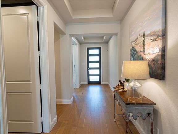 Spacious, well-appointed single-story home in Argyle ISD’s Canyon Falls neighborhood. Thoughtful design delivers an open interior with wide hallways, tray ceilings, and on-trend light wood floors throughout major spaces, creating a seamless flow ideal for everyday living. Off the foyer, a private study with French doors and custom-built-ins offers a dedicated work-from-home space or, with its access to plumbing, makes a great lounge room. The central living area features vertical shiplap above the fireplace and as part of the built-ins, adding architectural detail and a warm focal point. The adjacent kitchen is appointed with quartz countertops, stainless steel appliances, a farmhouse sink, a five-burner gas cooktop, a pot filler, and a large island with pendant lighting. It's a perfect gathering space for family and friends. Bedrooms are arranged in a three-way split configuration for privacy and flexibility. The primary suite boasts direct patio access from the bedroom, while the attached bath offers dual sinks, a frameless shower, and a soaking tub beneath a rain-glass window. Two secondary bedrooms share a full bath, while a third has its own ensuite—ideal for guests or multigenerational living. A powder bath is conveniently located near the living & media rooms for easy access when entertaining. The soundproofed media room is great for movie nights, gaming, or as a versatile flex play room. The utility room features extensive storage, with a shiplap wall including coat hooks, cubbies above and below a built-in bench, and space for an additional refrigerator. Outdoors, the extended covered patio includes ceiling fans, a stone-lined planter, and gas connections for a grill or patio heater. Canyon Falls amenities include pools, splash pad, fitness center, dog park, playgrounds, plus miles of trails. HOA covers front yard care, internet, and cable. Walk to Argyle South Elementary. An inviting blend of comfort and community in a prime location.