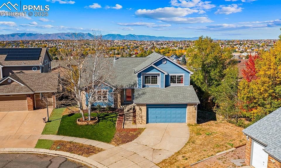 Room to grow, views to inspire, and a location you’ll love. Tucked away on a quiet cul-de-sac in a wonderful neighborhood, this spacious 4-bedroom, 3-bath home offers 3,866 sq ft of living space and stunning Pikes Peak views from the kitchen, family room, primary suite, and back deck. The large .41-acre lot provides plenty of outdoor space to enjoy Colorado’s sunshine and scenery. Inside, you’ll find a comfortable, well-designed layout with multiple living areas and a 5-piece primary bath featuring a soaking tub and skylight. After years of happy memories with the same owners, this home is ready for its next chapter—offering a great layout, mountain views, and the chance to make it uniquely yours. Located just minutes from the Powers corridor, you’ll have easy access to grocery stores, shopping, restaurants, movie theaters, hiking, parks, and miles of walking trails. With solid construction, a fantastic location, and unbeatable views, this home is priced below market value—an incredible opportunity to make it your own.