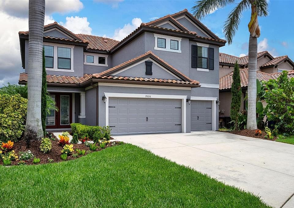 Stunning 6-Bedroom Smart Home with Movie Theater Room, Resort-Style Pool, Pond View & Lux Outdoor Living Welcome to 7020 Island Queen Court—a perfect blend of luxury and comfort. This remarkable 6-bedroom, 4-bath home boasts high-end finishes and thoughtful upgrades throughout its spacious 3,247 sq ft open floor plan. The centerpiece of the home is a chef’s kitchen with Cambria quartz countertops, a ceiling-high travertine backsplash, a large island with chair-height seating, premium appliances, and a custom accent wall—ideal for entertaining or cozy family meals. The quartz countertops continue into every bathroom, adding a consistent touch of elegance. Host movie nights in your private theater, complete with a 135” screen, electric reclining seats, Dolby Atmos surround sound, and a professional-grade setup for an immersive experience. Elegant architectural details like box beam ceilings, 7.25” crown molding in every room, and a custom staircase accent wall add timeless sophistication to the interior. A custom cubby station keeps life organized as a stylish drop zone for shoes, backpacks, and essentials, while extra storage beneath the staircase and a generous entryway coat closet maximize functionality. Convenience meets design with an upstairs laundry room featuring a high-efficiency washer, complete with a secondary drawer for delicates or smaller loads. Step outside to a resort-style lanai with gray travertine tile, a tiled grilling station, and a cozy fire table, all designed for easy entertaining and relaxing Florida evenings. Enjoy serene pond views and stunning sunrises from your private outdoor haven. The swimming pool completes this luxurious retreat.