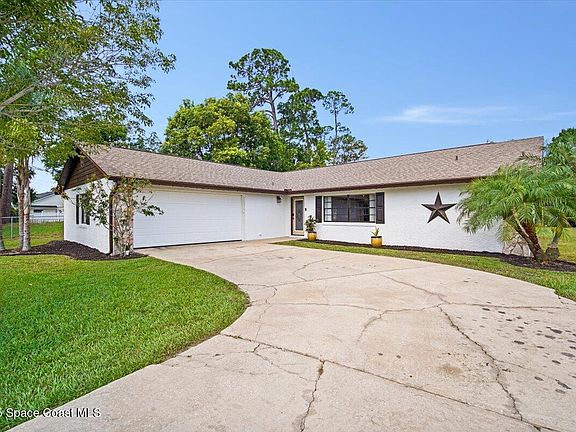 Freshly painted 3BD/2BA home on a spacious ½-acre lot in Port St. John—no HOA and private gated entry! This well-maintained property offers an open-concept, split-bedroom floor plan with great flow and natural light. The kitchen features granite countertops, stainless steel appliances, and rich wood cabinetry. Both bathrooms are nicely updated, including a tiled walk-in shower with glass doors. Step out back to a massive screened-in porch and an above ground pool, ideal for relaxing or entertaining. The yard is fully fenced with two sheds, a brand-new carport, and plenty of space for your RV, boat, or toys. Interior laundry room with sink and storage. Located on a quiet street with easy access to the Space Center, Space X and Blue Origin, easy access to I-95, beaches, and everyday conveniences. A rare mix of comfort, privacy, and functionality!