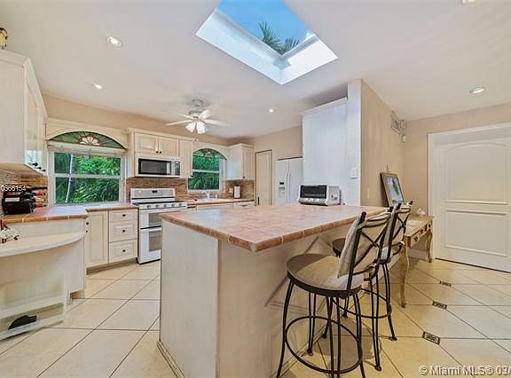 Beautiful 3be/3ba home in prime location of South Miami between miller and Sunset Dr. near St. Thomas the Apostle school & church. Featuring vaulted wood beam ceilings, tile & wood floors, split floor plan. Kitchen has brand new gas range, pantry & eat-in bar. All bedrooms have ensuite bathrooms. Spacious master has bay window that overlooks treetops & serene pond, his/hers closets, large bathroom. 3rd bedroom is used as office w/separate indoor utility room access. Skylights provide an abundance of natural light throughout home. Multi-level family room w fireplace downstairs that leads out to large outdoor wood deck overlooking unique freshwater pond. Very private. Small dogs considered. Easy to show! Minutes from UM. Pest control and monthly interior cleaning included